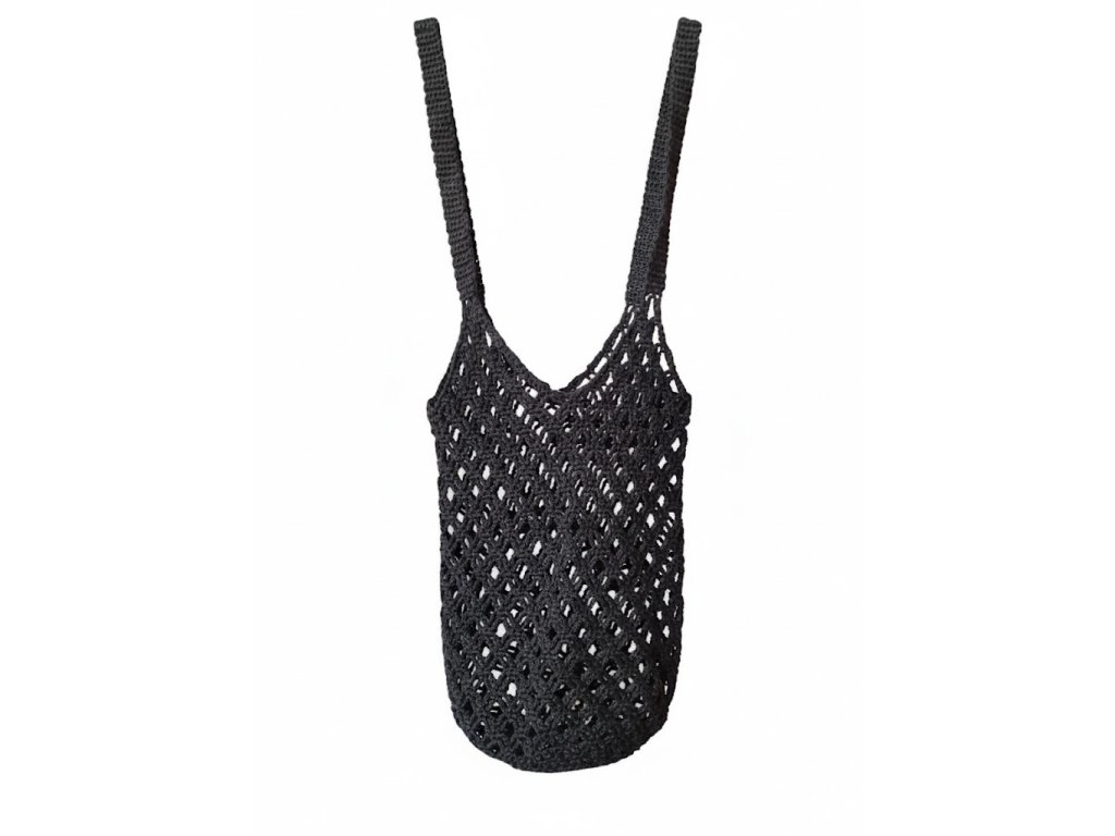 Tato malá ručně háčkovaná síťovka v černé barvě je roztomilým a všestranným doplňkem. S ohledem na její menší rozměry se skvěle hodí i jako stylová kabelka pro nezbytnosti, nebo pro dětské poklady. Je lehká, ekologická a zdobí ji jemný síťovaný vzor. Ideální pro ty, kteří milují ruční práci a originální doplňky.