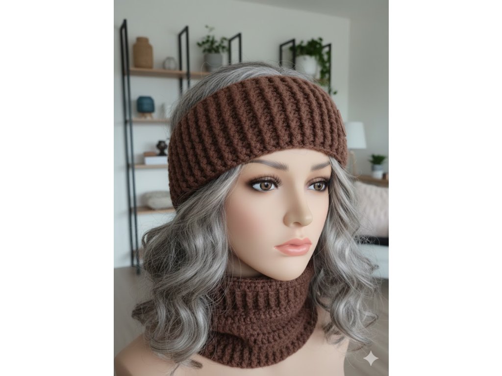 Ručně háčkovaná čelenka v elegantním hnědém odstínu je ideální pro chladnější dny. Vyrobena z hřejivé, měkké příze s výrazným žebrovaným vzorem, který skvěle drží tvar a spolehlivě ochrání uši. Čelenku zdobí decentní štítek "handmade", který podtrhuje její unikátnost. Skvělý a stylový doplněk pro každý zimní outfit. Možno koupit současně s nákrčníkem ze stejné příze.