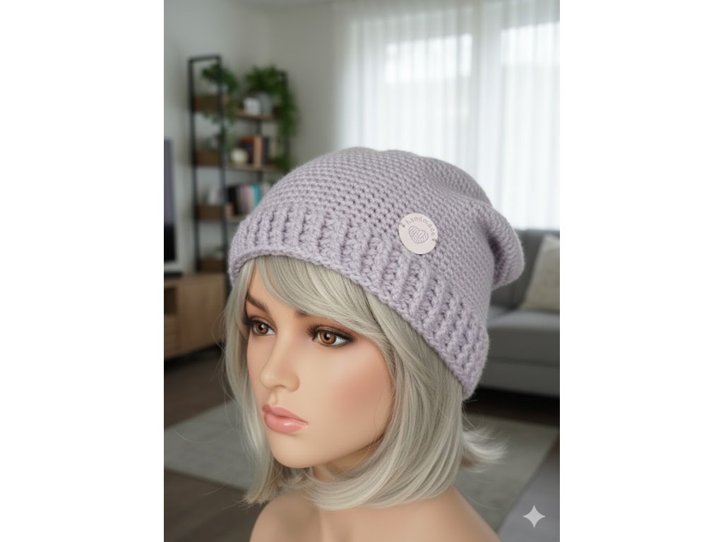 Ručně háčkovaná čepice (velikost XS) v krásné lila barvě je ideální pro chladné dny. Vyrobena z hřejivé a měkké příze, poskytuje pohodlí a stylový vzhled. Její design s decentním lemem a štítkem "handmade" podtrhuje řemeslné zpracování. Skvělá volba pro ty, kteří preferují menší velikost nebo pro mladší uživatele.