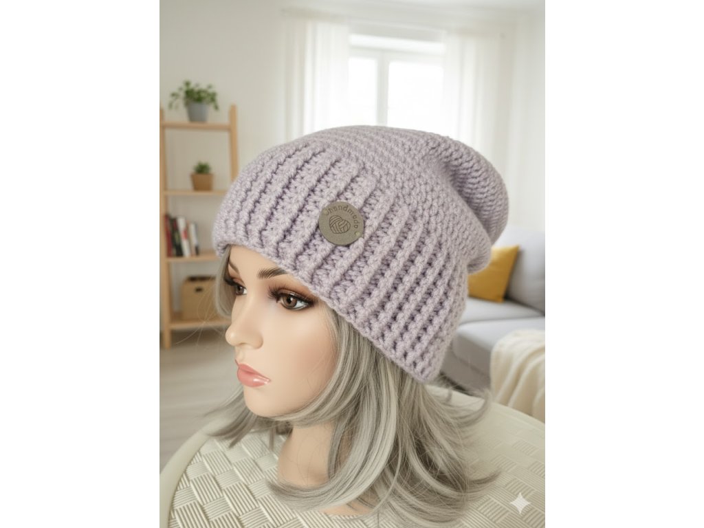 Ručně háčkovaná čepice ve světlém odstínu lila, je ideální pro chladné dny. Je vyrobena z hřejivé a měkké příze s texturovaným vzorem, který zajišťuje teplo a dobře drží tvar. Čepice se pyšní minimalistickým designem a je ozdobena decentním štítkem "handmade". Skvělý a stylový doplněk pro zimní měsíce.