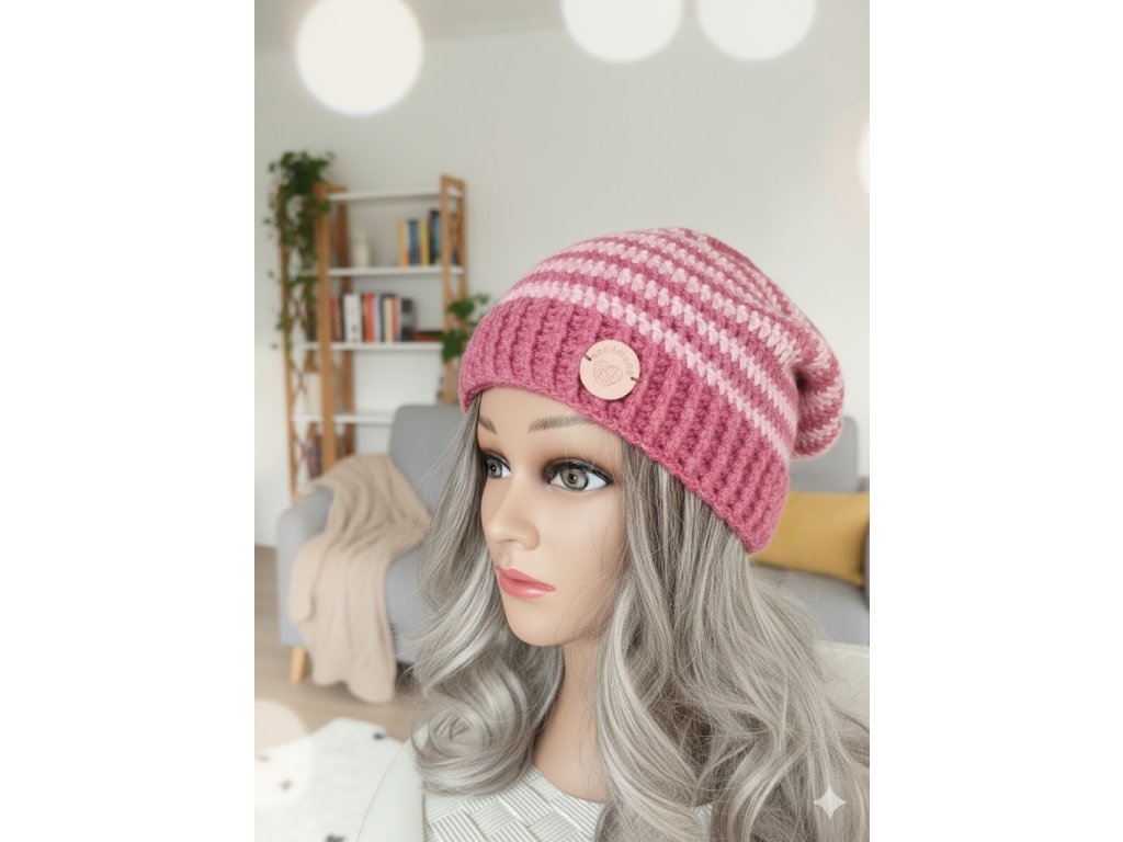 Ručně háčkovaná čepice ve stylové růžové barvě je ideální pro chladné počasí. Je vyrobena z hřejivé a měkké příze s texturovaným vzorem, který zajišťuje pohodlí i teplo. Čepice se pyšní minimalistickým designem a je opatřena decentním štítkem "handmade". Skvěle doplní jakýkoli zimní outfit.