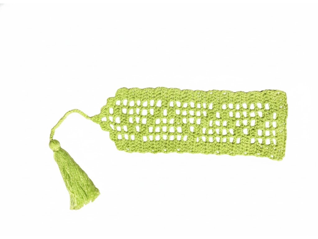 Tato jedinečná ručně háčkovaná záložka do knihy má prolamovaný, detailní krajkový vzor. Vyniká stylovou zelenou barvou a je zakončena bohatým střapcem. Její elegantní provedení a ruční práce z ní dělají krásný dárek pro každého milovníka knih.
