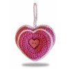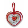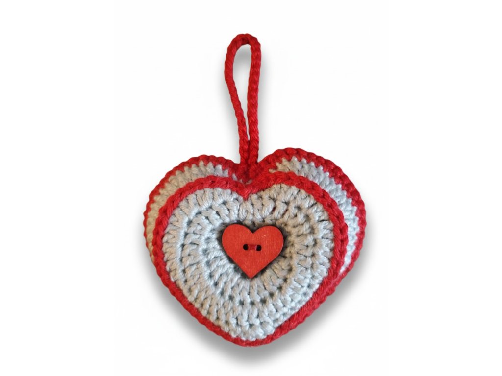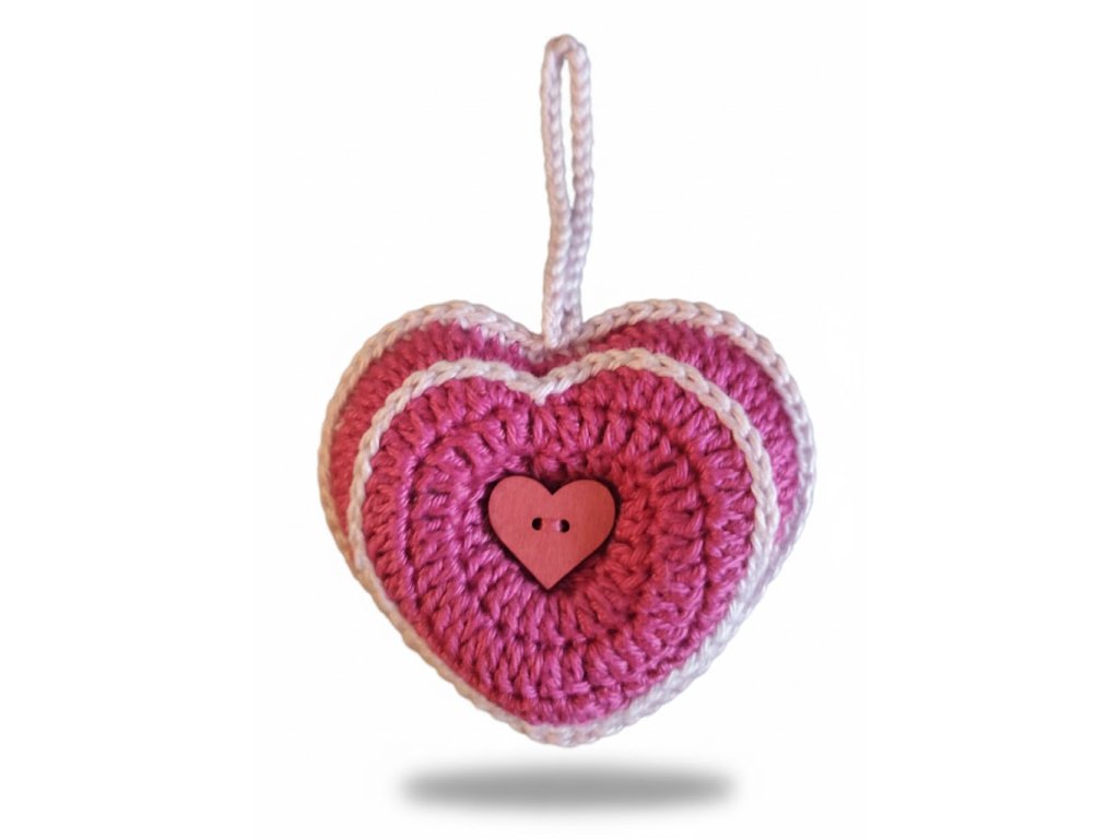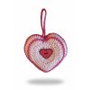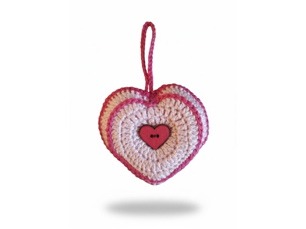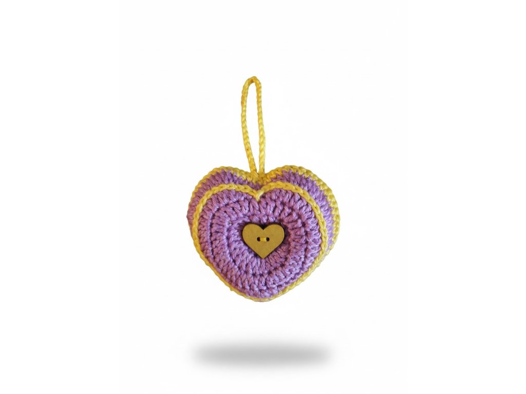 Tato ručně háčkovaná srdíčka v různých barvách jsou milým doplňkem pro radost. Zdobí jej ozdobný knoflík a praktické poutko na zavěšení. Díky precizní ruční práci a hravé kombinaci barev poslouží jako originální dekorace nebo drobný dárek od srdce pro vaše blízké.