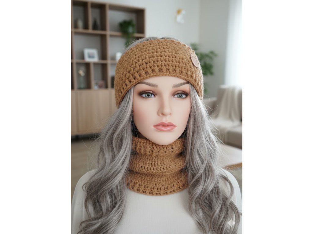 Tento ručně háčkovaný nákrčník (komín) v teplém karamelovém odstínu je dokonalým doplňkem pro chladné dny. Vyrobený z měkké a hřejivé příze, poskytuje maximální pohodlí a spolehlivou ochranu krku. Jeho jednoduchý, ale elegantní design se snadno kombinuje. Praktický a stylový kousek "handmade" pro podzimní a zimní outfity. Možno koupit současně s čelenkou ze stejné příze.